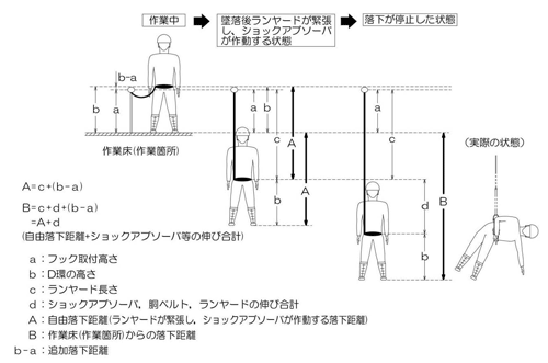 う。)の取付設備等の高さを減じたものにランヤードの長さを加えたものをいう(図1及び図2のA)。